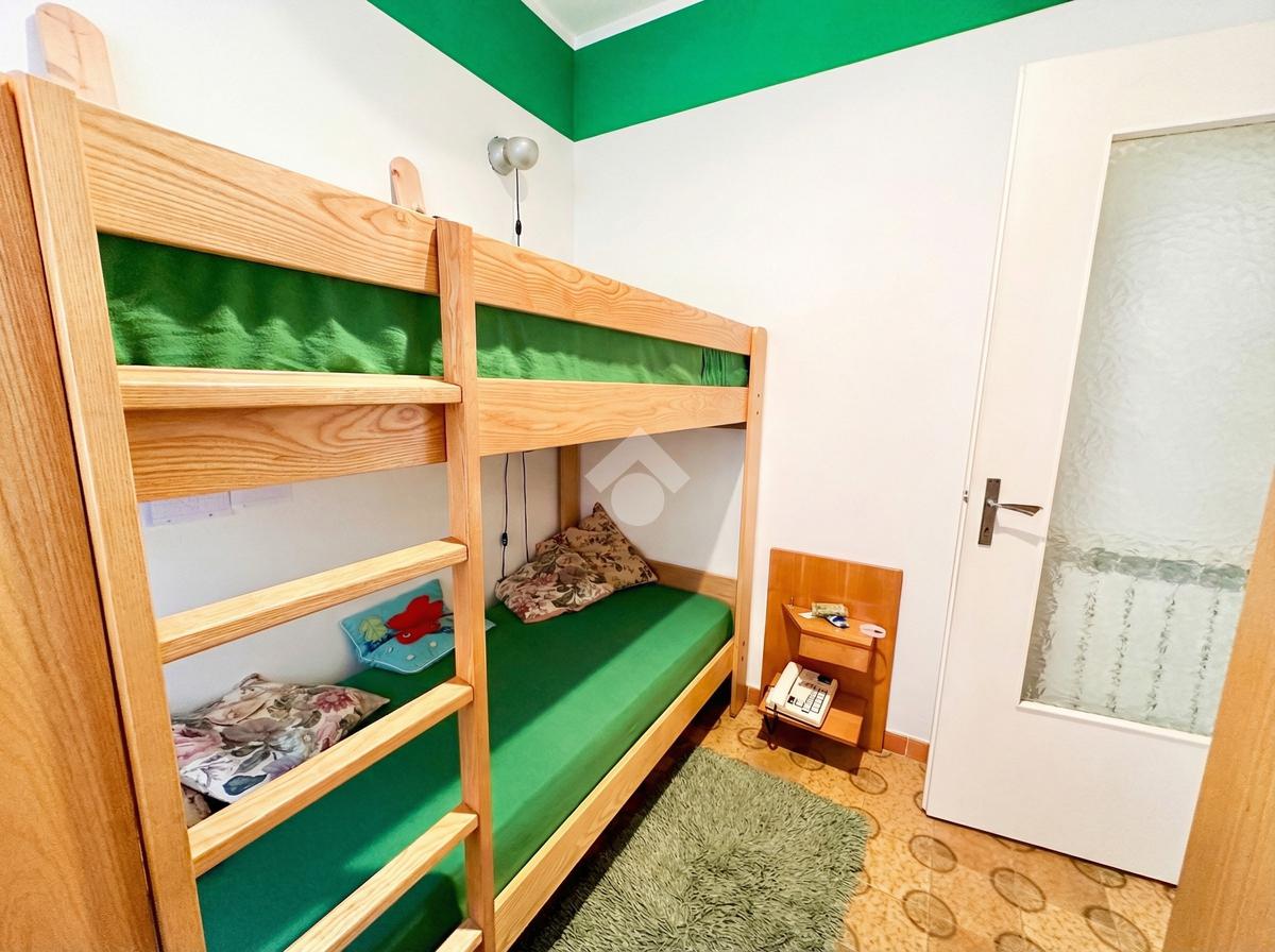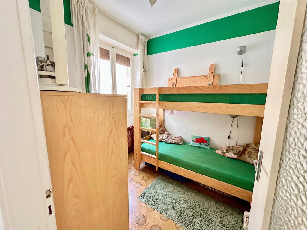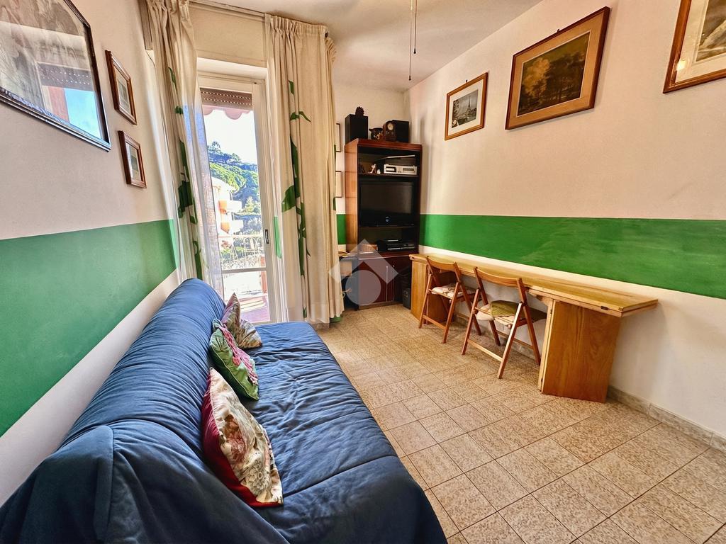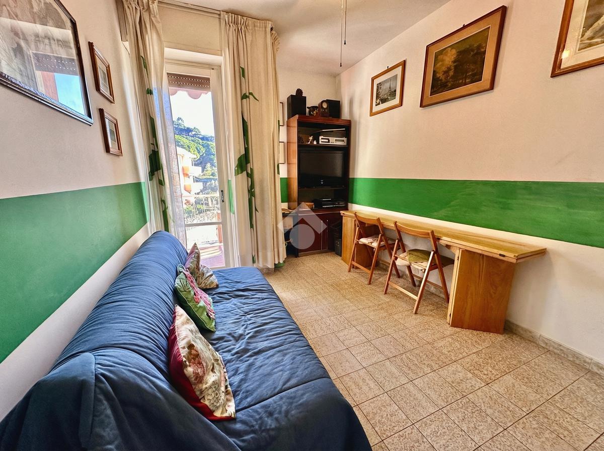 L’alloggio si compone di una zona giorno luminosa grazie alla porta finestra che accede al balcone da cui si gode di una bella vista mare. Continuando troviamo una camera matrimoniale anch'essa con accesso al balcone, una seconda cameretta, il bagno dotato di finestra ed un comodo e utile ripostiglio.