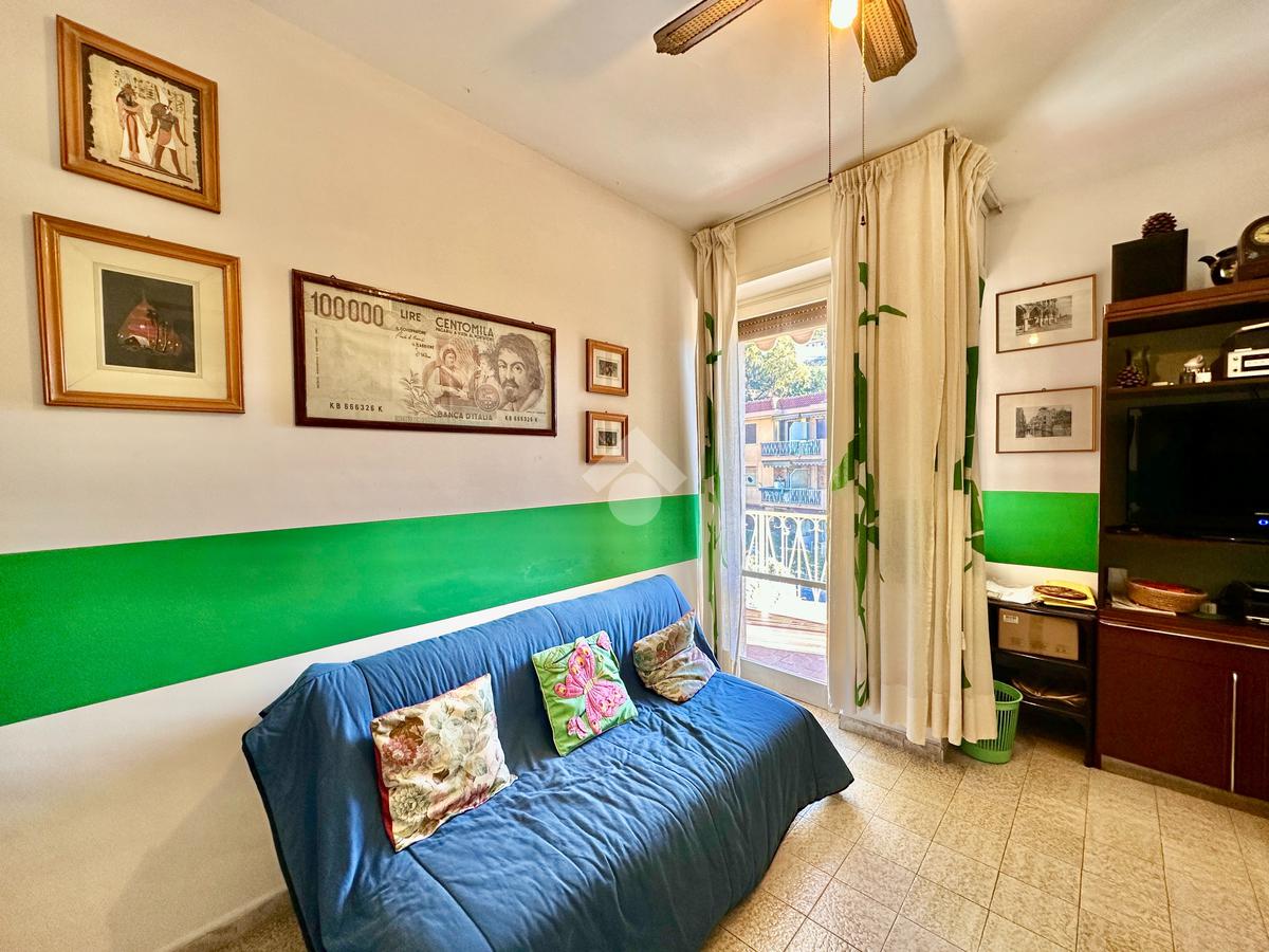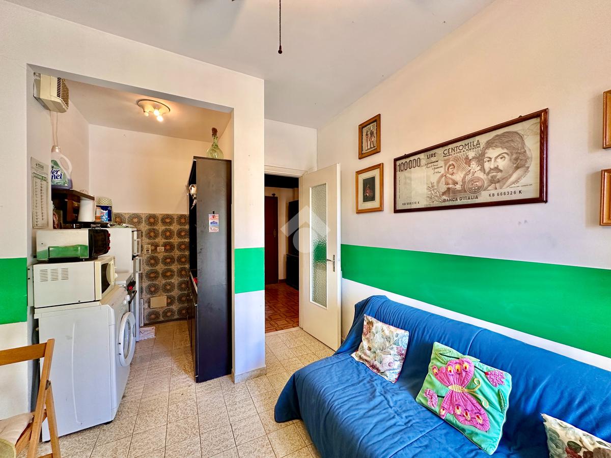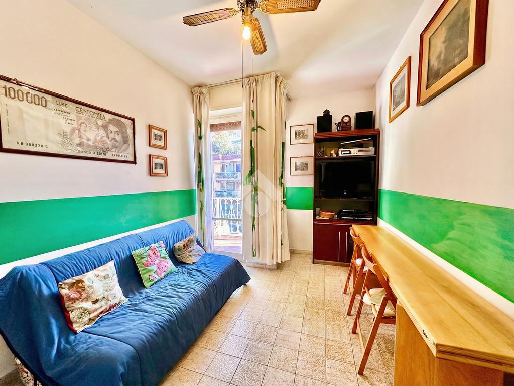 L’alloggio si compone di una zona giorno luminosa grazie alla porta finestra che accede al balcone da cui si gode di una bella vista mare. Continuando troviamo una camera matrimoniale anch'essa con accesso al balcone, una seconda cameretta, il bagno dotato di finestra ed un comodo e utile ripostiglio.