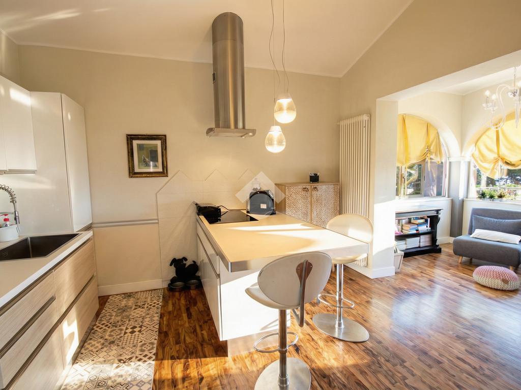 La proprietà, di oltre 200 mq, è suddivisa in due appartamenti indipendenti collegati da una scala interna.
