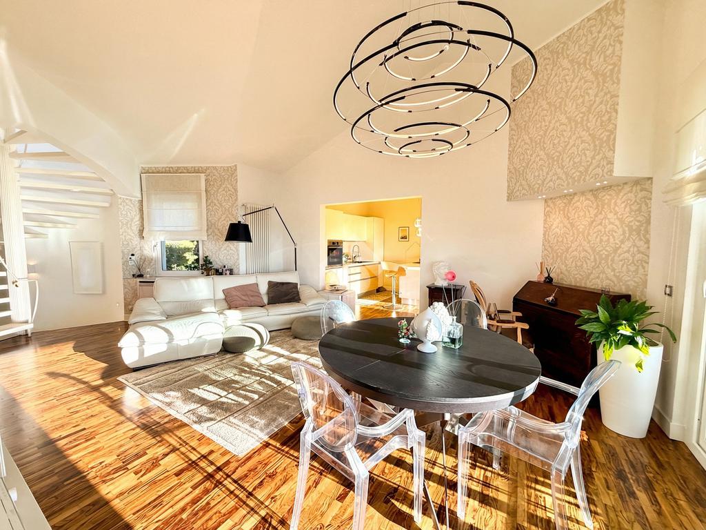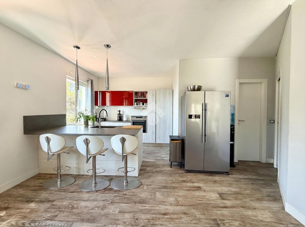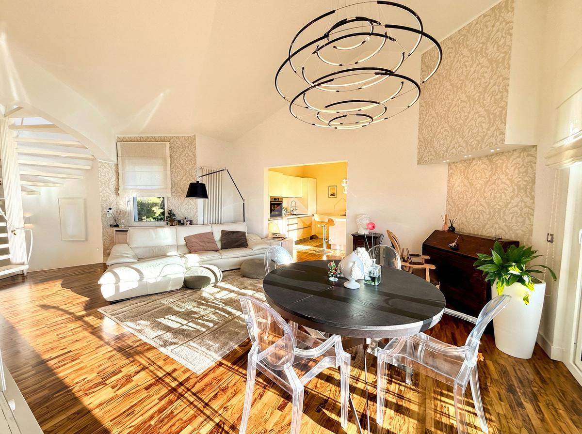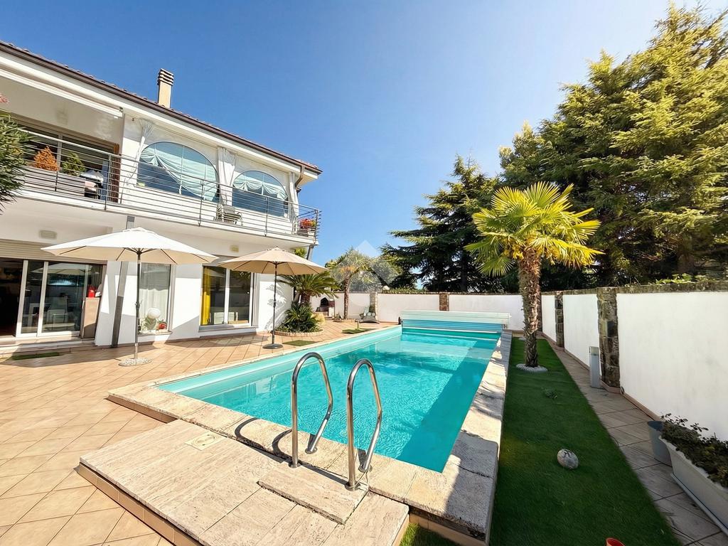 Ogni elemento è stato progettato con attenzione al comfort e all’eleganza: parquet d’ulivo, carte da parati di design, arredi ricercati e materiali di pregio. Al piano seminterrato si trovano un ampio garage, cantina e locali tecnici a servizio della villa e della piscina.