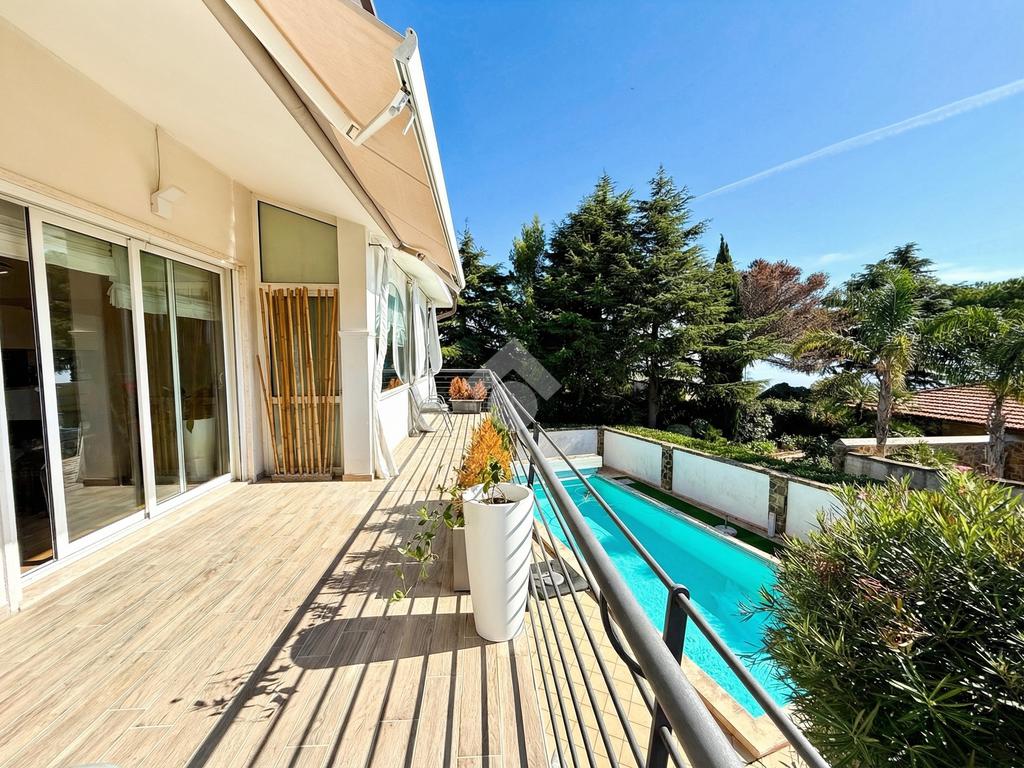 Nel cuore della zona più esclusiva e riservata di Cipressa, dove il silenzio e la privacy sono un valore assoluto, proponiamo in vendita una scenografica villa di lusso con piscina e parco privato, affacciata sul mare della Riviera ligure con vista che spazia fino alla Costa Azzurra.