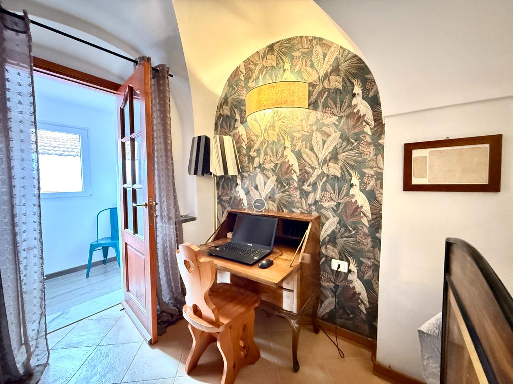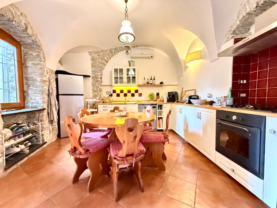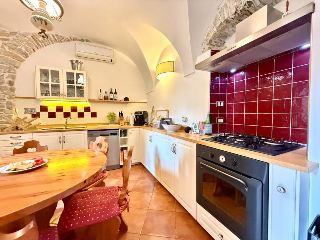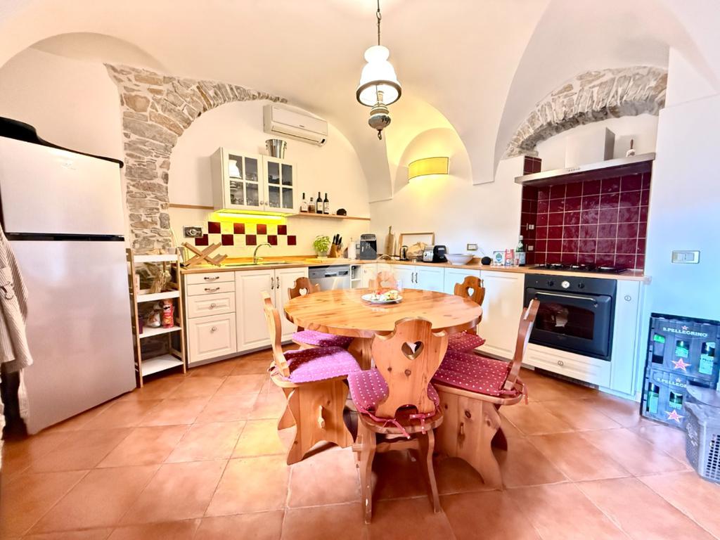 La casa è stata oggetto di una ristrutturazione curata che ha saputo valorizzare gli elementi tipici delle abitazioni storiche liguri, integrandoli con dettagli eleganti e contemporanei che donano carattere e armonia agli ambienti.
