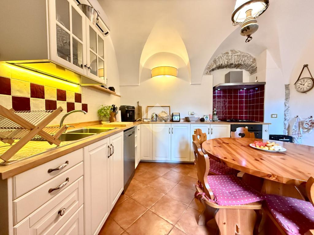 La proprietà si apre su una spaziosa cucina abitabile completamente attrezzata, caratterizzata da splendidi muri in pietra a vista e soffitti a volta, che si collegano armoniosamente all’accogliente soggiorno, creando un ambiente caldo e conviviale.
