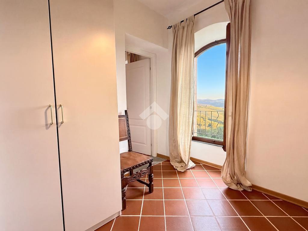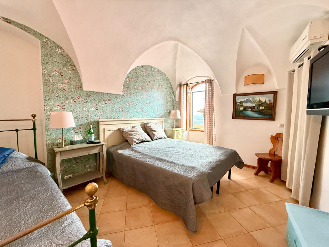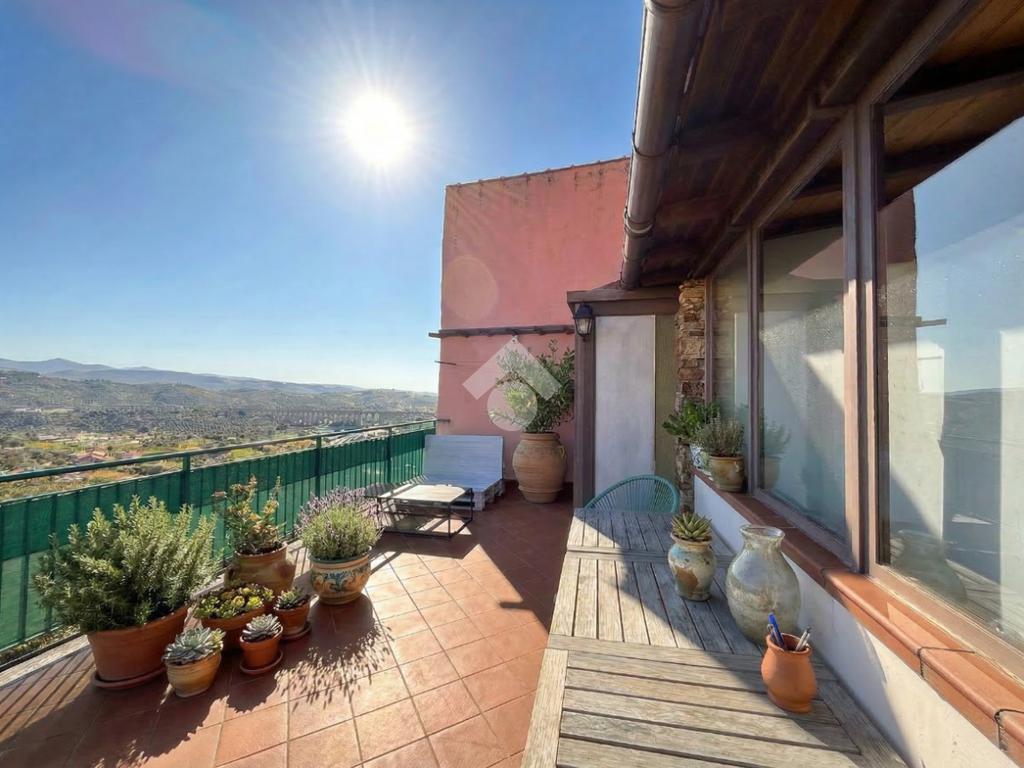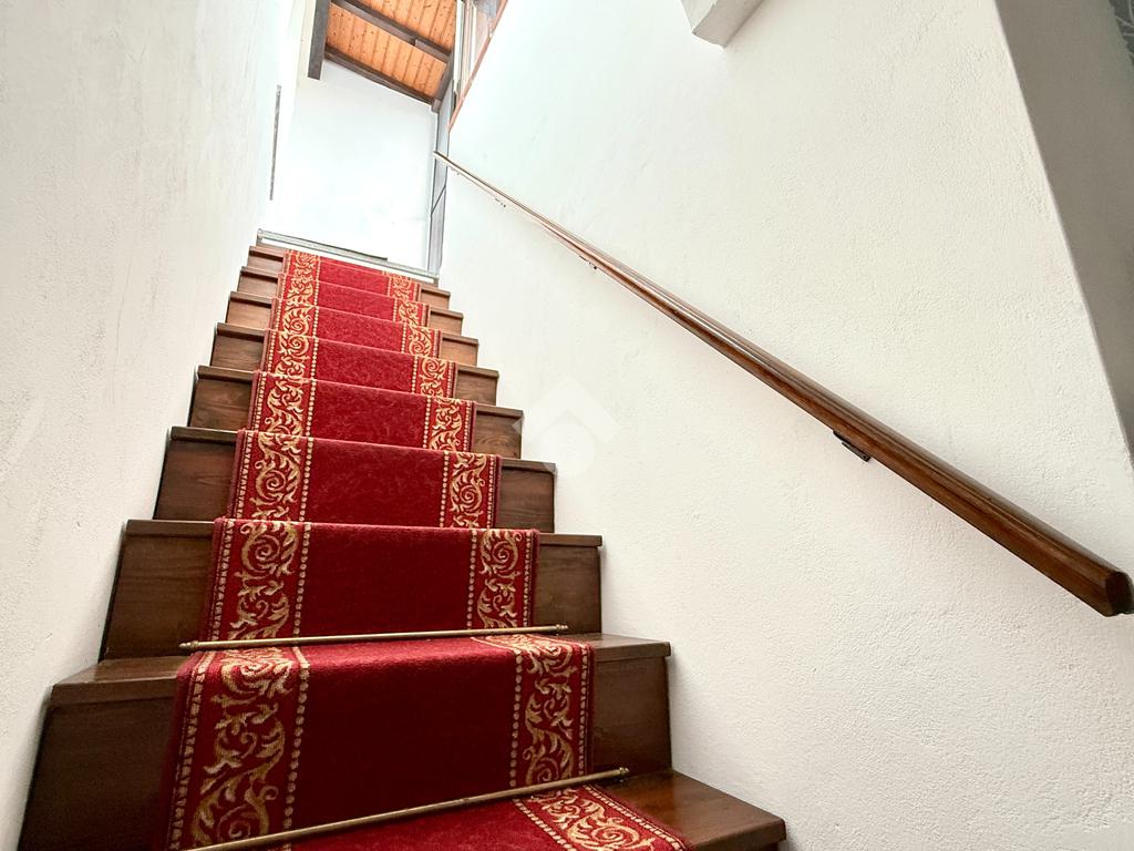 Una caratteristica scala in legno conduce alla grande terrazza panoramica, vero punto di forza della casa: uno spazio ideale per pranzi e cene all’aperto o per momenti di relax, con una piacevole vista sul borgo e scorcio sul mare.