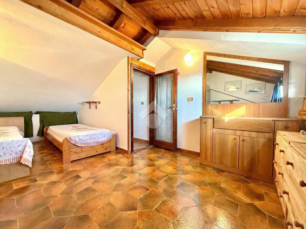 Al piano superiore, la villetta offre un accogliente e luminoso spazio con una meravigliosa vista mare, ideale come studio o seconda camera.