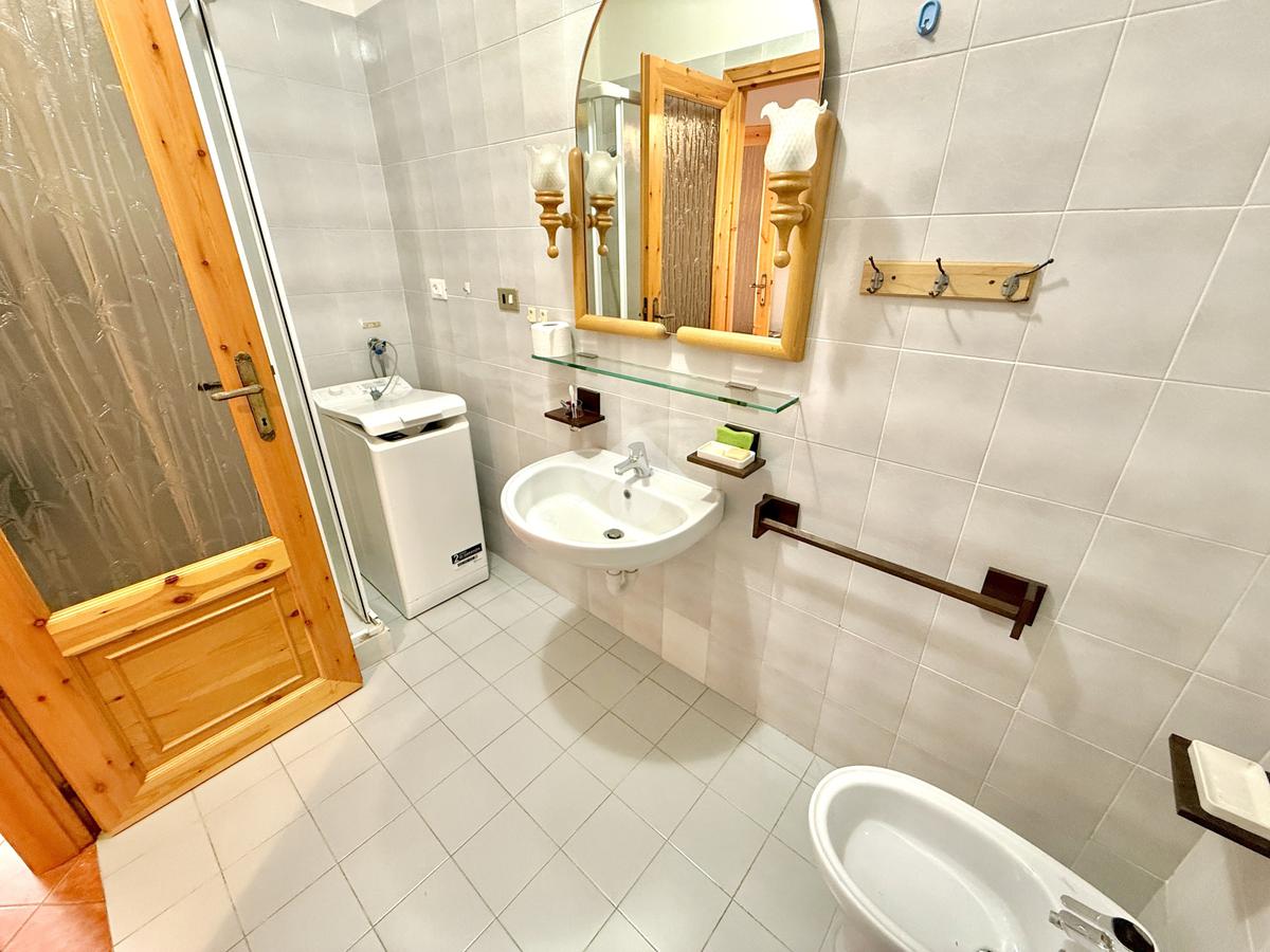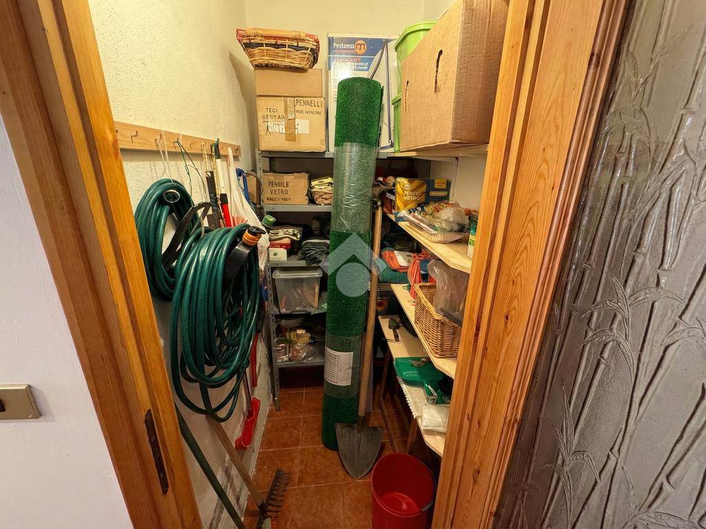 Dalla zona giorno, una comoda scala vi porterà al piano inferiore, dedicato alla zona notte. Qui troverete una spaziosa camera matrimoniale con accesso diretto a un ampio giardino comune, un bagno con doccia e un pratico ripostiglio.