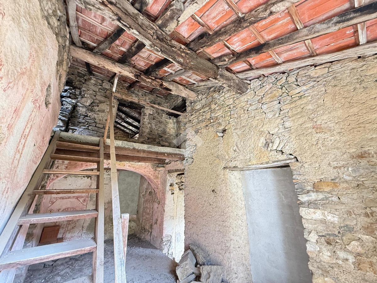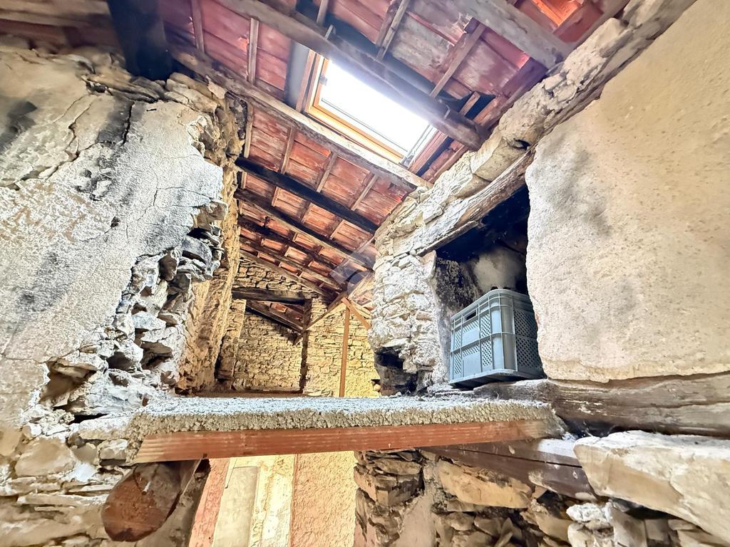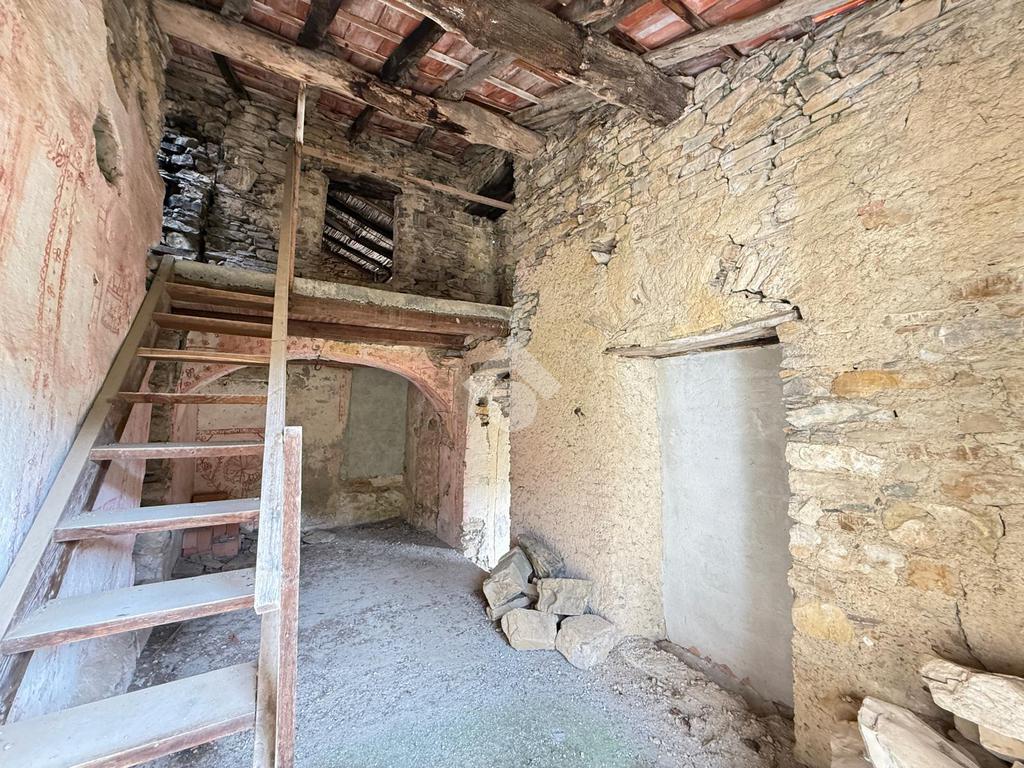 La proprietà è composta di una grande cantina in piano terreno con le tipiche arcate e le volte in pietra dei borghi liguri connessa alla parte abitativa situata al piano primo da 3 vani con finestre con vista sulla vallata ed in piano secondo altre 2 stanze.